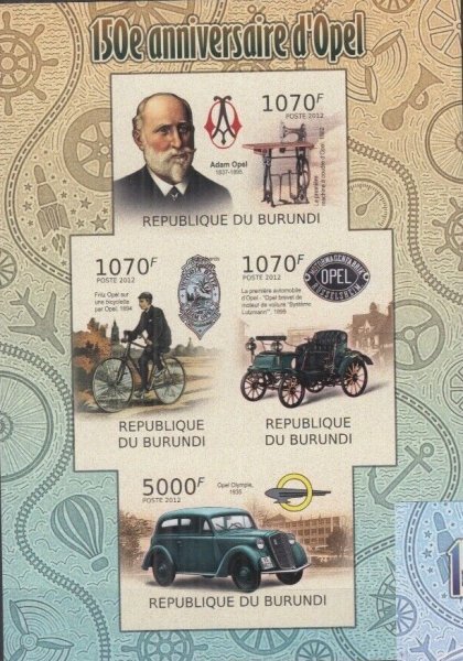 - ブルンジ切手『オペル』無目打 4枚シート 2012
