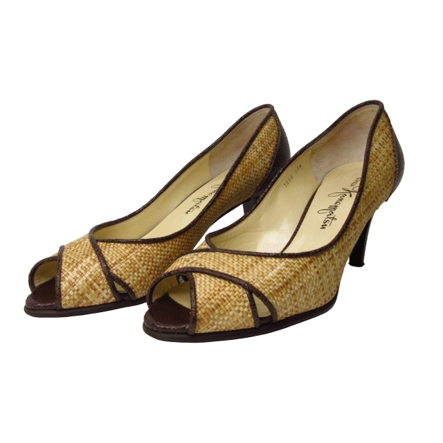 > 銀座かねまつ GINZA Kanematsu パンプス オープントゥ 編み生地 ベージュ ブラウン 22.5cm vv149 0301 レディース