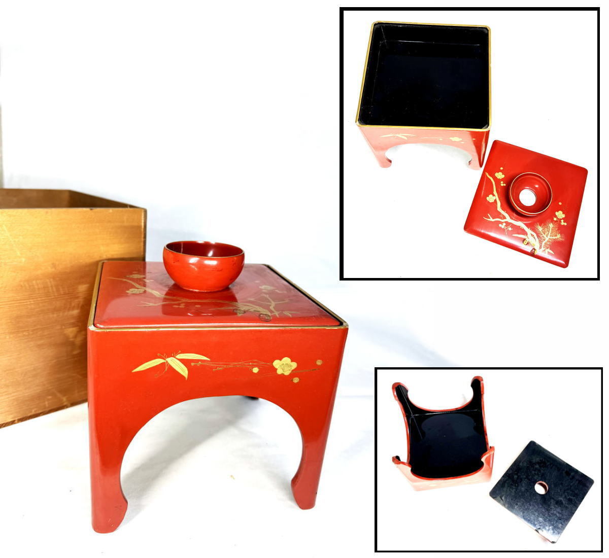 - 【送料無料】木製朱塗漆器 盃台 蒔絵 漆器 時代物 骨董 古玩 日本古美術 細密細工 ウブ品 (旧家蔵出し) WWWT097