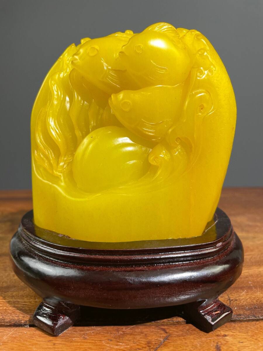 - 『館蔵珍品 寿山石 田黄石 細密彫 金玉滿堂紋印章』置物 賞物 貴重物品 収蔵品 中国古美術