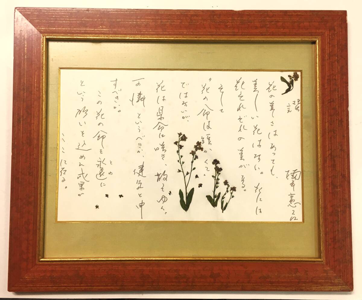 - 楠本憲吉 肉筆詩稿 「讃:花の美しさはあっても・・・」 額装 俳句 短歌 草稿 生原稿 押し花
