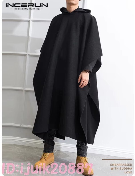 - Pr1408: メンズ ロング コート 新品 大きいサイズ S M L XL 2XL 3XL 4XL 5XL 黒色 未使用 男性 マントコート アウター 上着 ポンチョ 冬