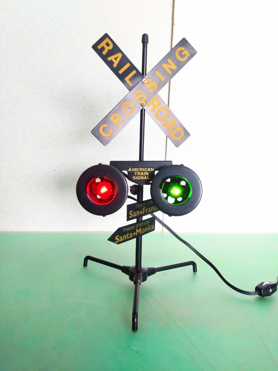 > ●1987年製 レトロ ヴィンテージ アメリカン ステーション 鉄道路線 信号機 電車 列車 踏切 トレイン シグナル 点滅 ライト 最大47.5cm①