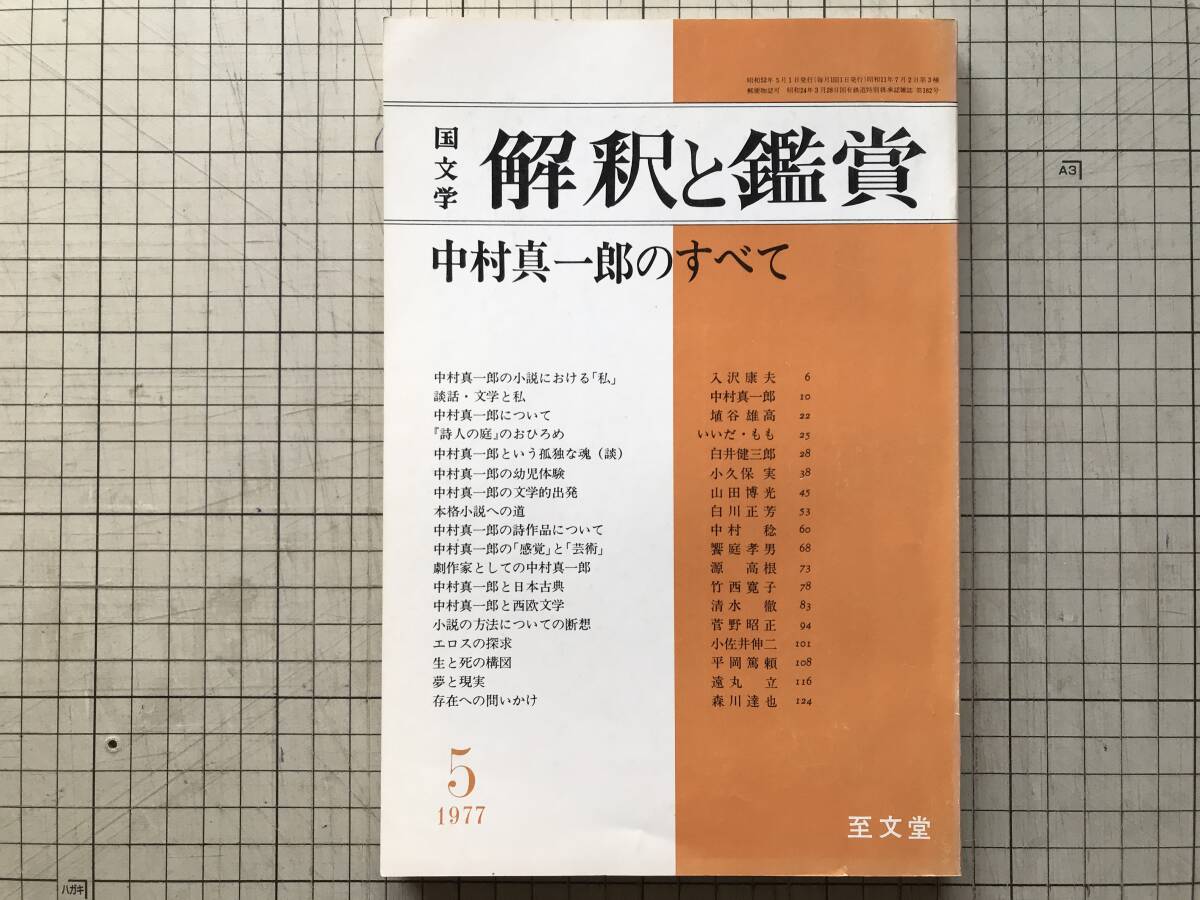 > 『国文学 解釈と鑑賞 第540号 第42巻6号 中村真一郎のすべて』入沢康夫・埴谷雄高・饗庭孝男・竹西寛子・清水徹 他 至文堂 1977年刊 10984