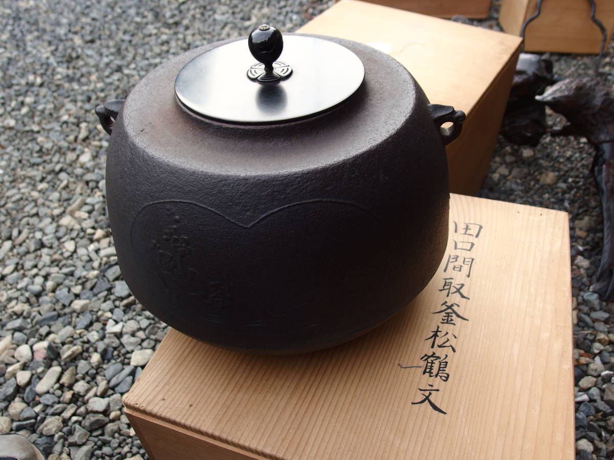 - ★【210212 I】菊池政光 田口式 間取釜松鶴文 炉釜・茶道具