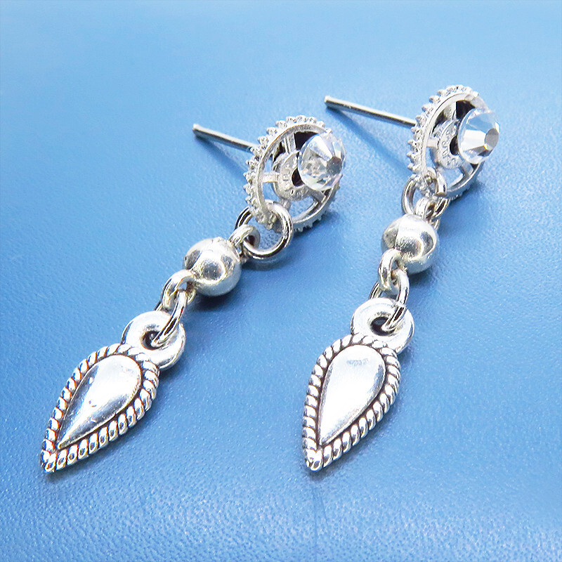- アンティークシルバー リーフと歯車のコンパクトなスタッドピアス ラインストーン メンズ レディース