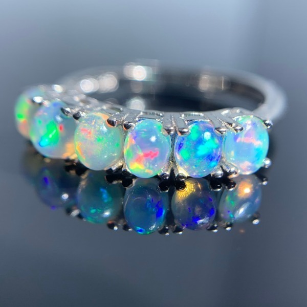 女性用天然オパールリング、3×4mm、オーストラリア産、925 スターリングシルバー、結婚婚約パーティー、ファインジュエリー