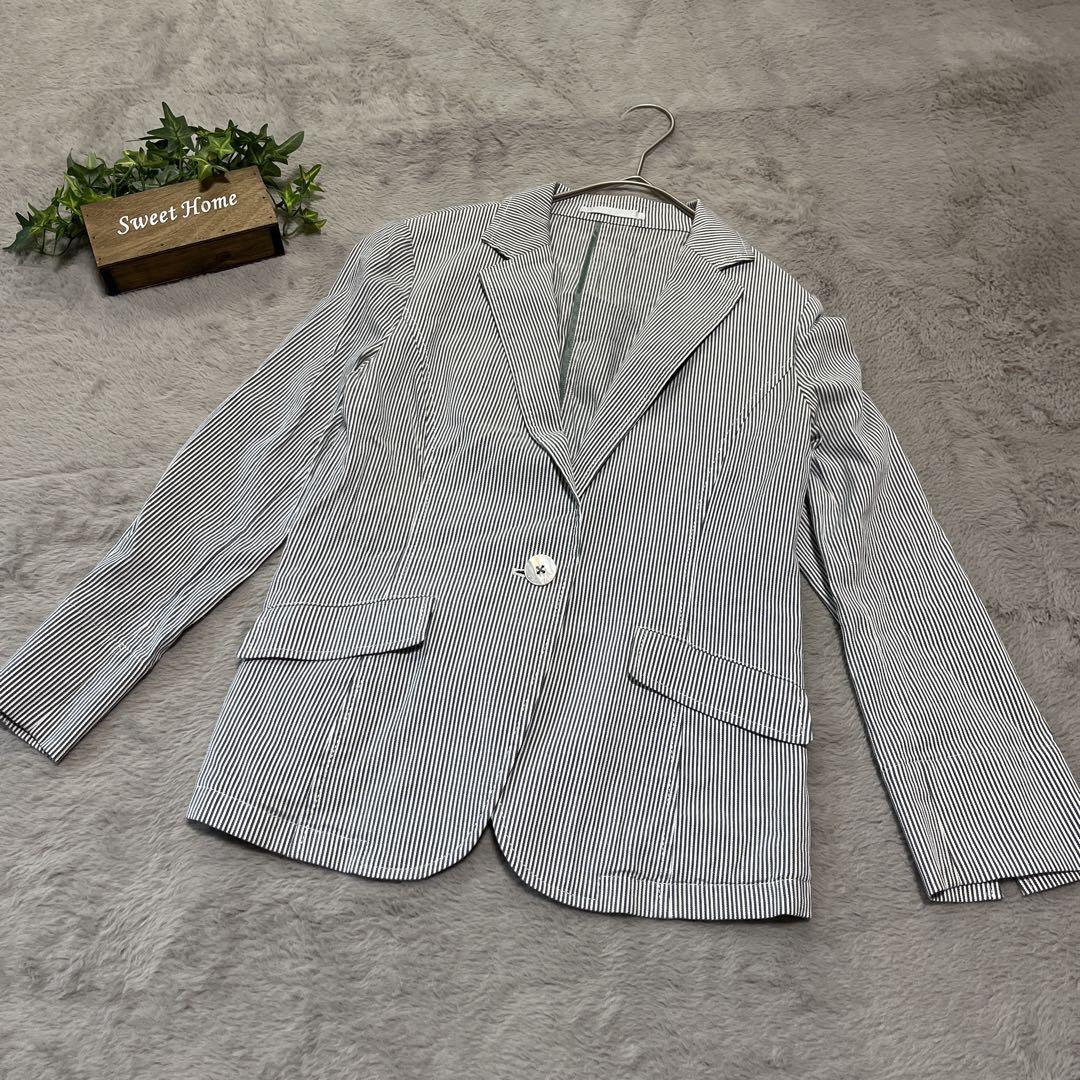 - テーラードジャケット S ストライプ 6 薄手 オフィス 事務 通勤 レディース