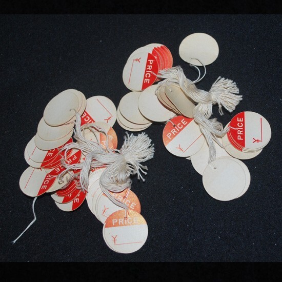- ●2200● 昭和雑貨 ◆ レトロ 紐付値札 「 PRICE ¥ / w : 2 . 4 cm 」 100 枚程で ◆ 細かな洒落心、昭和の趣きの演出に!