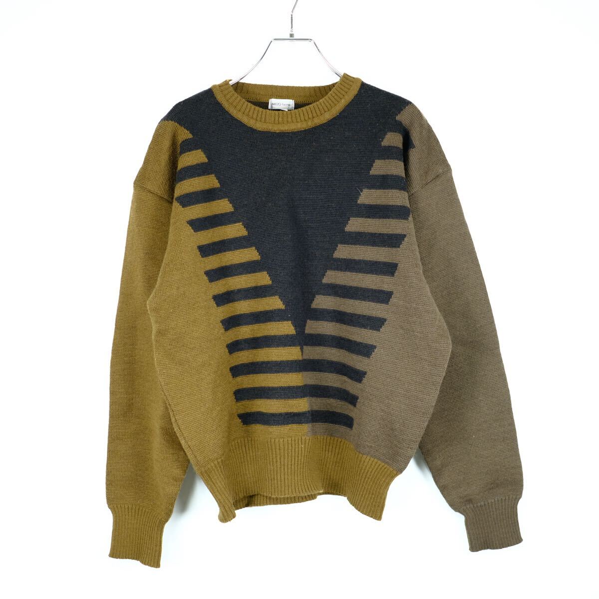 - 80s Takezo for men デザイン柄 ウールニットセーター 古着屋 タケゾーフォーメン デザイナーズ 初期 90s ビンテージ プルオーバー