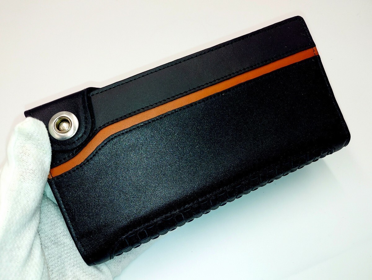 - ◆ホースハイド(馬皮)薄型・軽量・2つ折り長財布・表面にカラーライン内部同色カラー・メッシュ編み込み風等・軽量でお洒落な多収納財布●