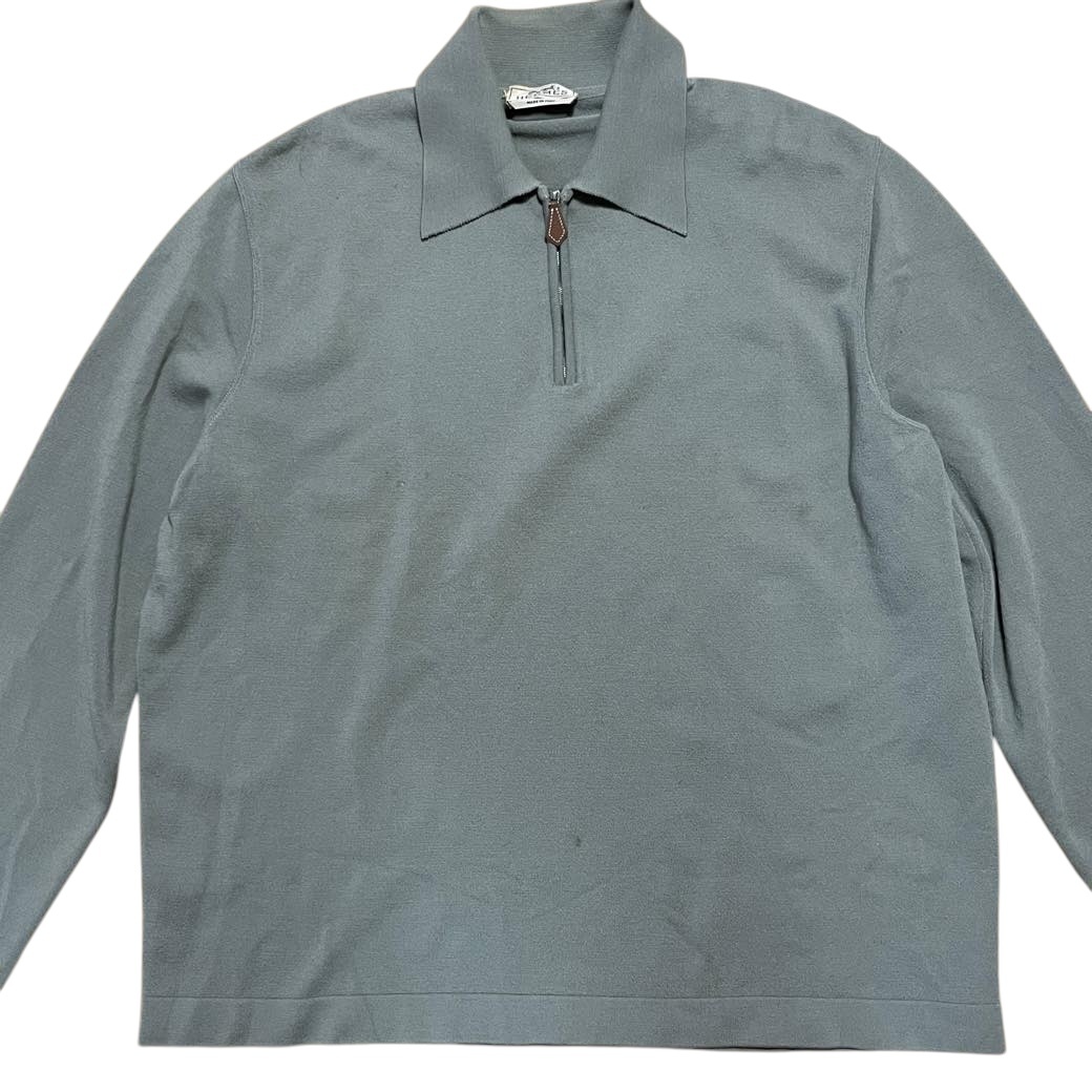 > ヴィンテージ HERMES レザープル ロングスリーブ ニットポロ メリノウール レザープル #A2435