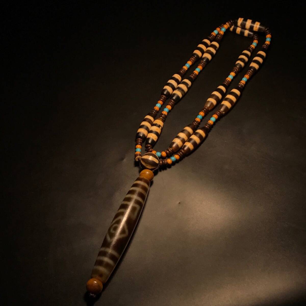 - 『清・古瑪瑙彫・線珠配九眼天珠・ネックレス本・自然風化・根付・風水開運』極細工 置物古賞物 中国古玩 中国古美術
