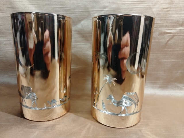 - ゴールド グラス 2個 11x6.5cm 月の砂漠 ラクダ キャラバン ピラミッド