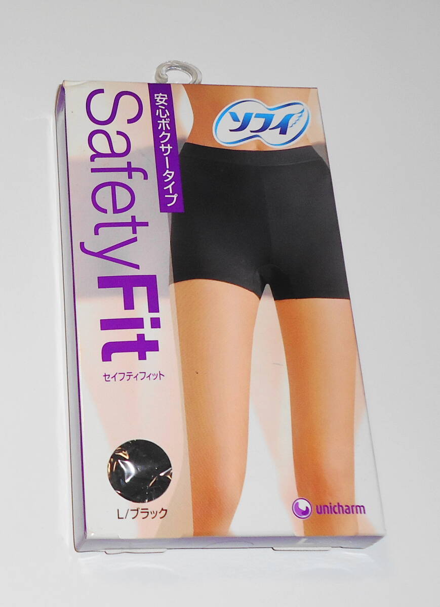 - 送0【 新品 ソフィ SafetyFit サニタリーショーツ 】Lサイズ 黒 安心のボクサータイプ 軽やかな履き心地 セイフティフィット