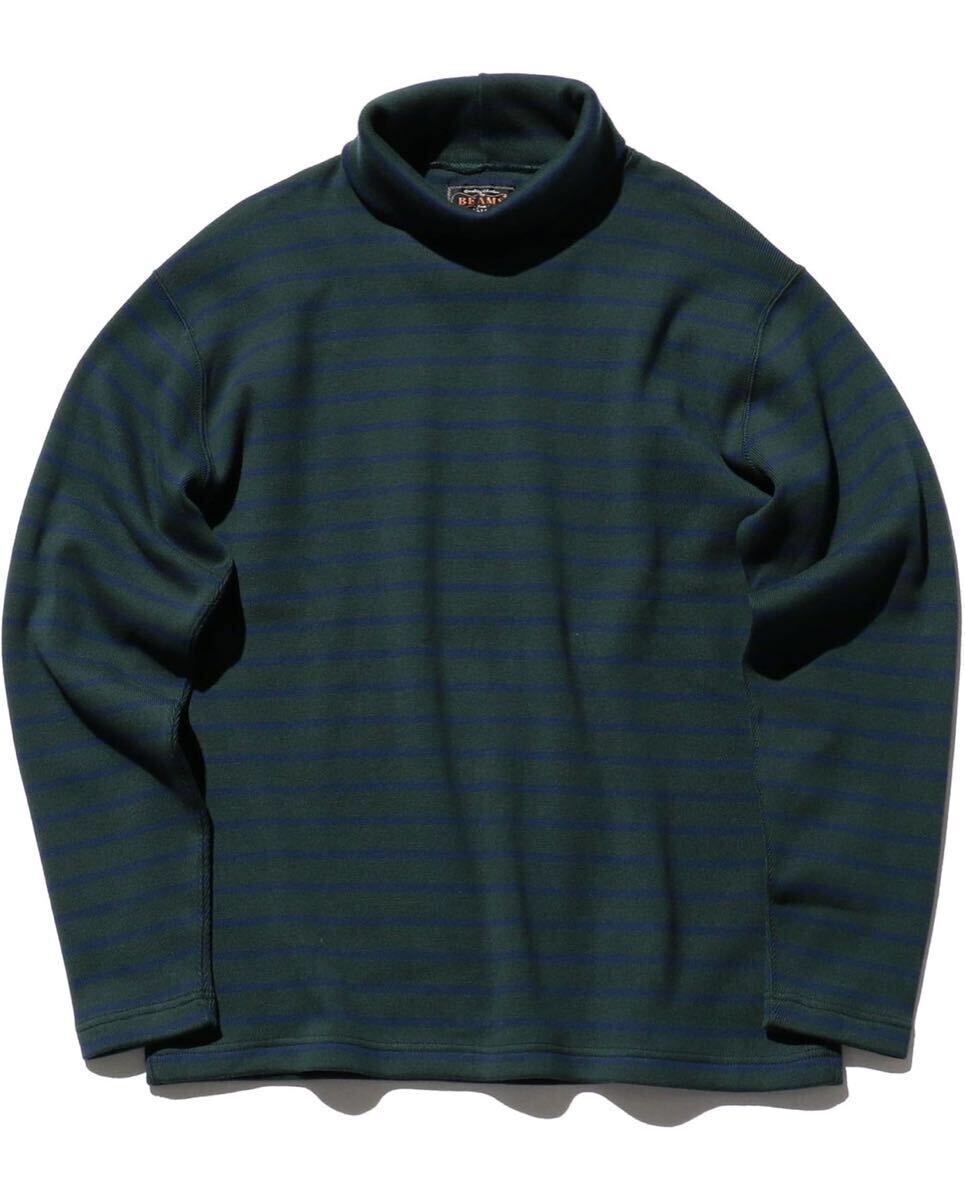 - BEAMS PLUS L/S TEE フライス ストライプ ハイネック Tシャツ XL緑