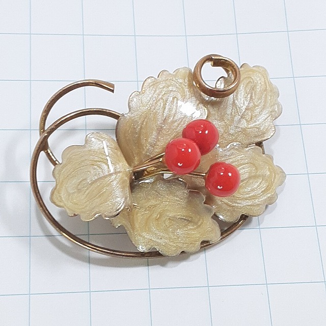 - 送料無料)ビンテージ☆珊瑚風 木の実モチーフ☆アンティーク ブローチ A28678