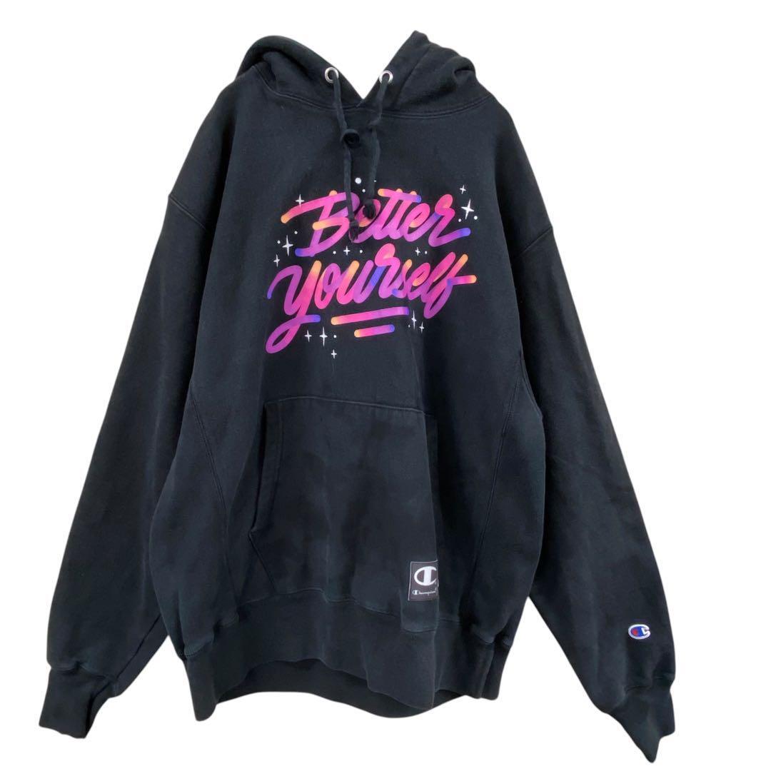 - チャンピオン レディースパーカー 黒 M 裏起毛 春秋 古着【2682】