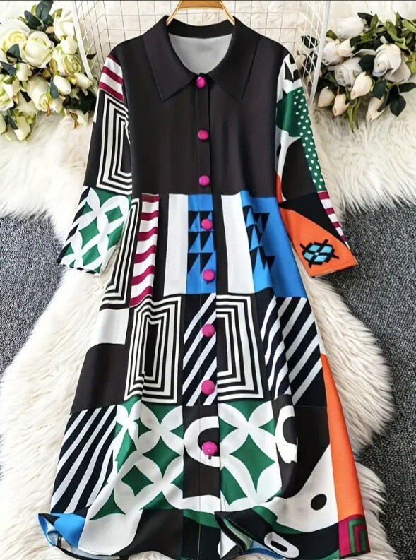 - 新品 大きいサイズ XL ワンピース 長袖 シャツワンピ ゆったり ブラック系 おしゃれ