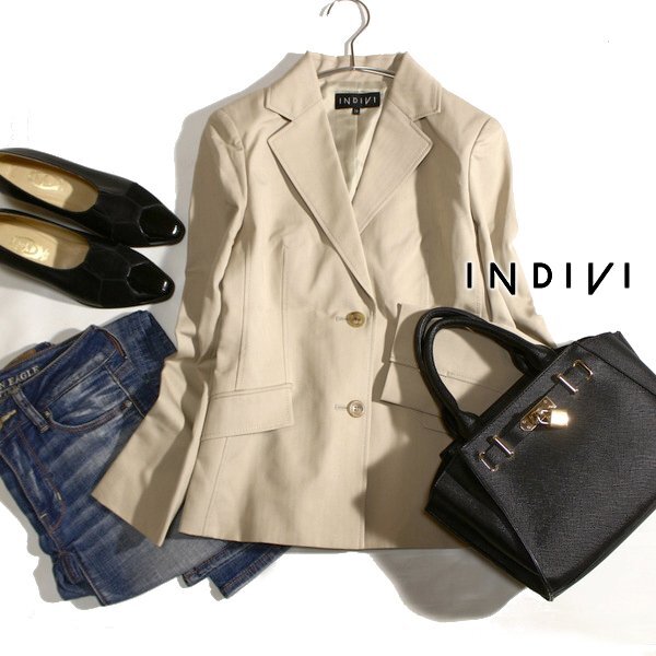 > 美品 INDIVI インディヴィ 同色ストライプ柄 綺麗め コットン ジャケット 36号 S 春 秋 25A03