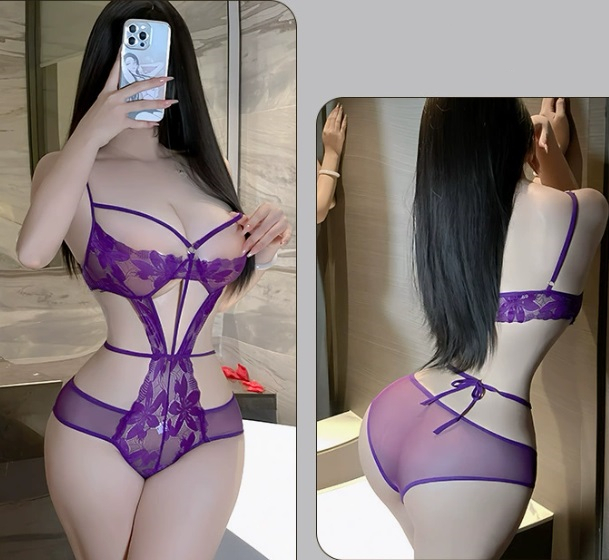 - 新販売 セクシー 悩殺 シースルー ハイレグレオタード エロ下着 レースクイーン パジャマ ナイトウェア 紫