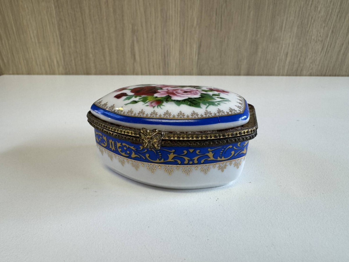 - 【中古品】 アンティーク 陶器 小物入れ ジュエリーボックス レトロ 花柄