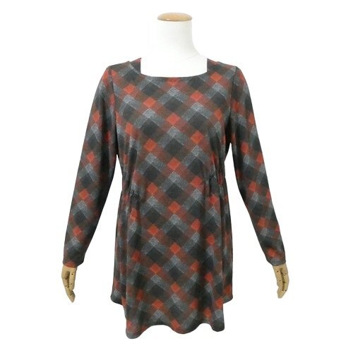- ヒロコビス 美品 チュニック カットソー グレー 赤系 チェック柄 11号 長袖 ブラウス ポリエステル HIROKO BIS ヒロココシノ◆O3