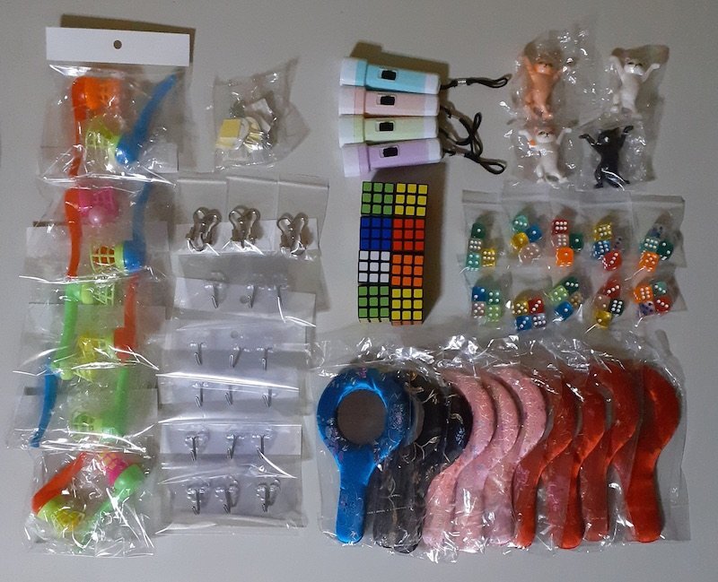 > 5384 景品50個セット フック/懐中電灯/立体パズル他 ビンゴジャンケンパーティー 送料含めても1個あたり70円前後100円ショップより安い