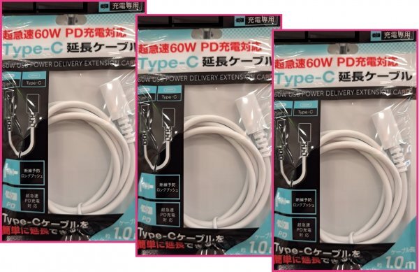 - 【送料無料 3本 1m 延長 ケーブル タイプC - C】★PD対応 急速充電 断線防止 iPhone,アンドロイド スマホ 両面 Type C:両面 C-C C&C