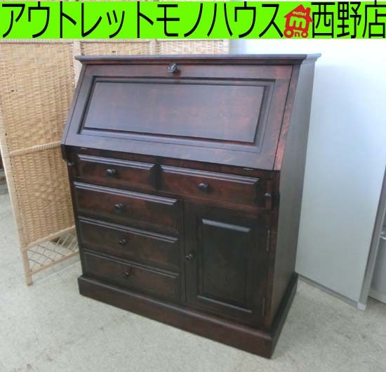旭川家具 北斗民芸 ライティングビューロ90 カバ材 幅90 KG-HK-0266 民芸家具 ライティングデスク 机 チェスト 書斎 札幌 西野店