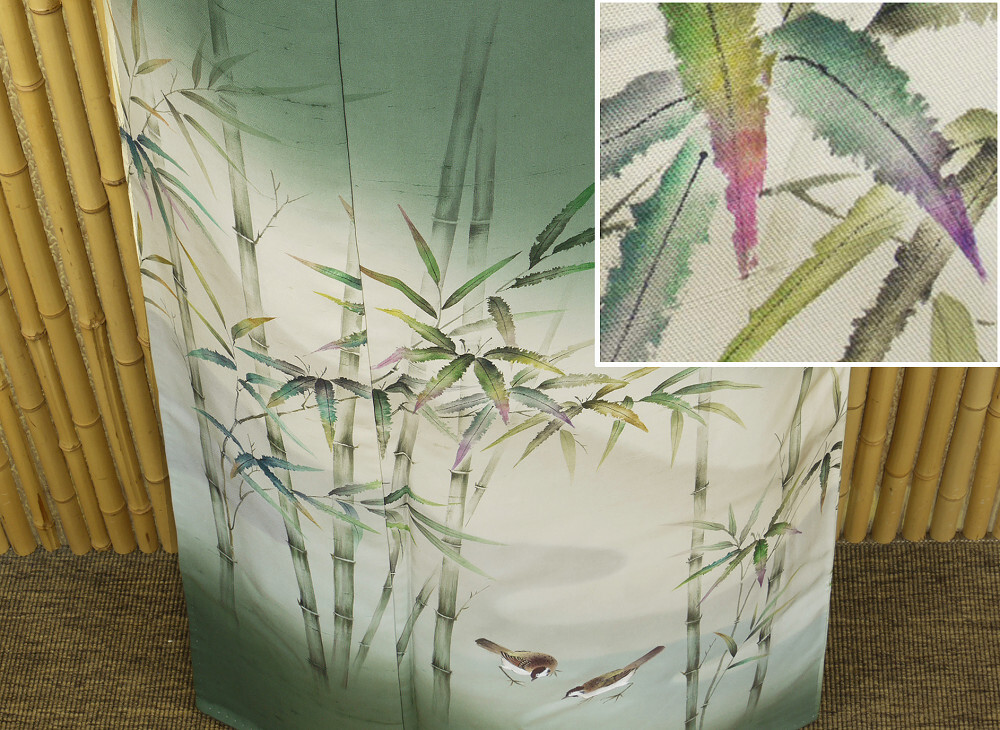 - 【京かんざし】492★創作訪問着 白山紬 本加工友禅 パールトーン 躾糸付未着用身丈167 cm裄丈66.5 cm袖丈48 cm★即決送料無料!