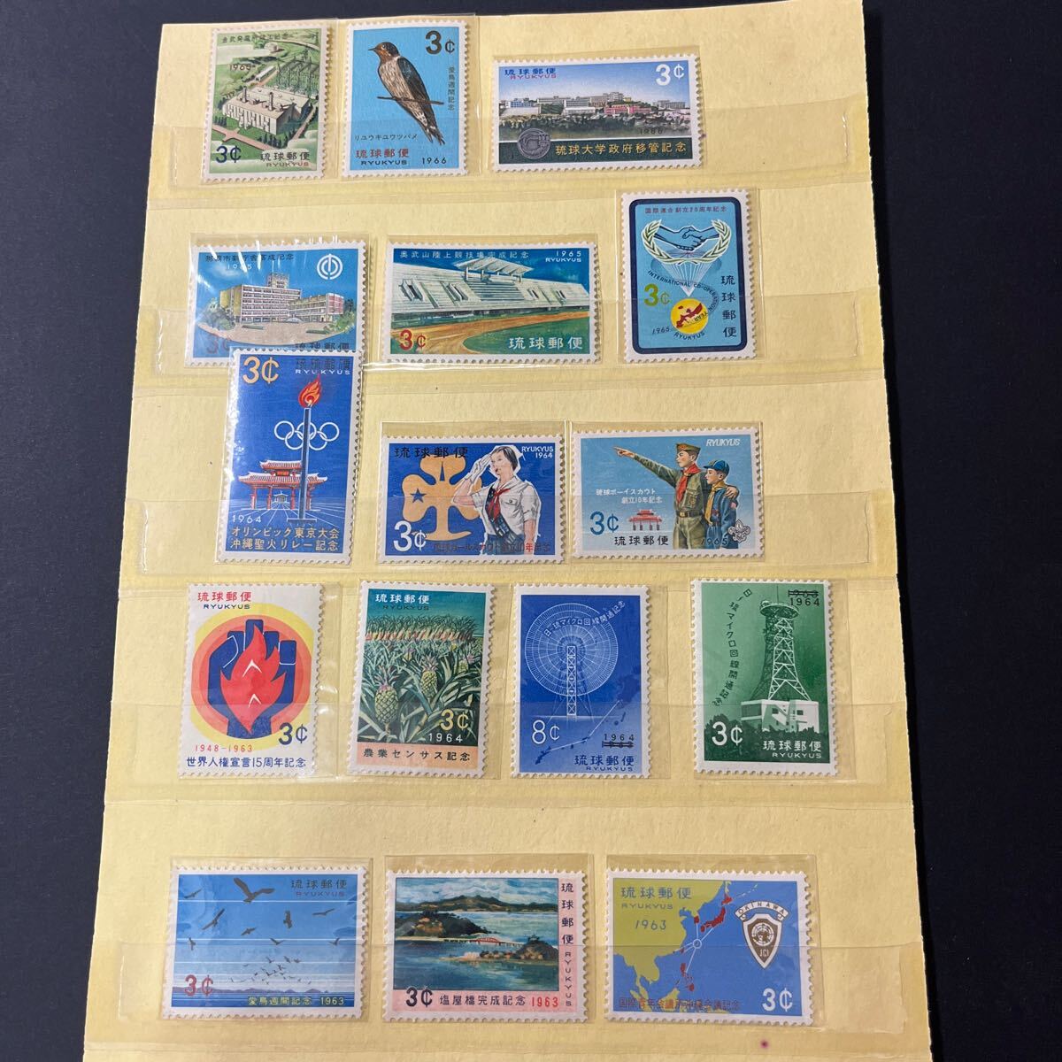 - ◆ 琉球郵便切手 日琉マイクロ回線開通 8¢切手、1964年農業センサス記念、沖縄聖火リレー記念、塩谷橋完成記念切手など未使用16枚!