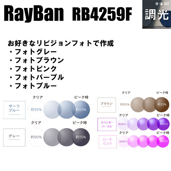 > ■調光 交換レンズ■RB4259F 交換レンズ 調光サングラス ブルー グレー ブラウン パープル ピンク