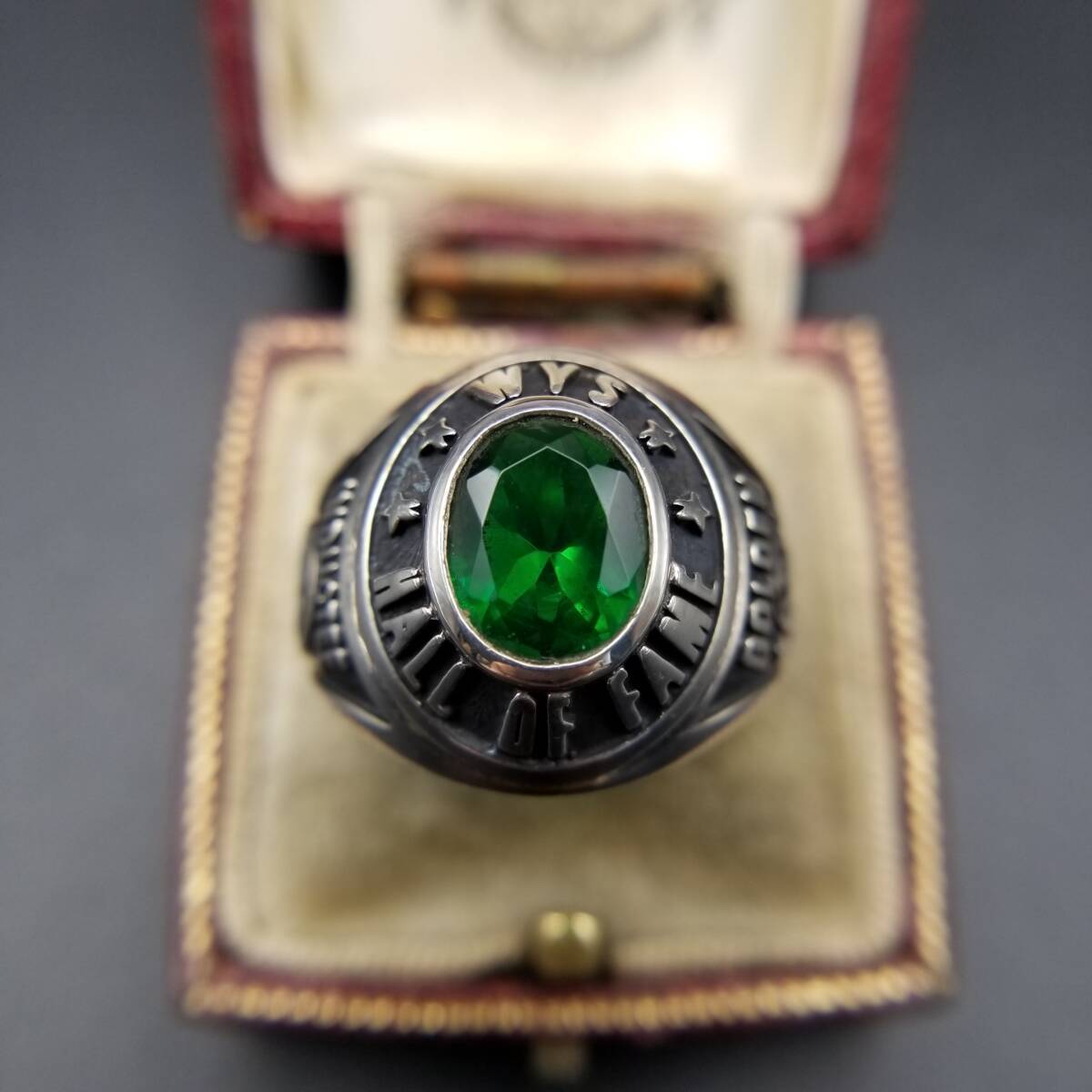> WYS Hall of Fame Inductee Golden Goal 925 シルバー ヴィンテージ シグネット リング 銀 指輪 メンバーズ 緑石 オーバル Y21-U