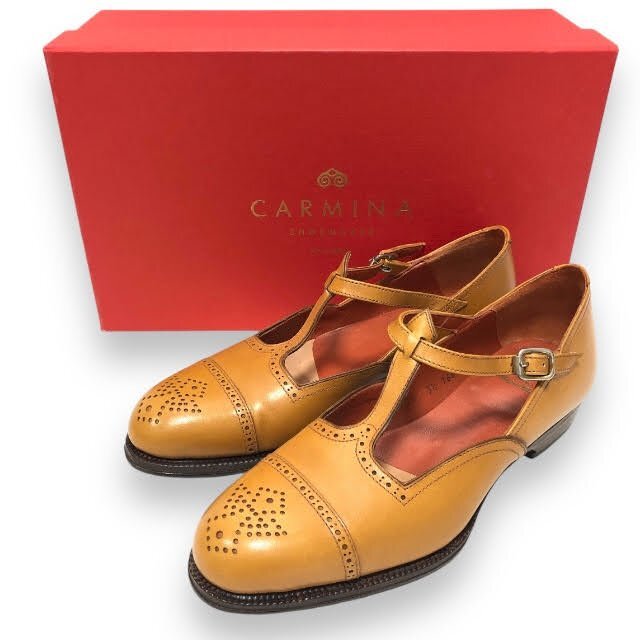 - ▼極美品【CARMUNA】カルミーナ ストラップ セミブローグ ブラウン系 サイズ3 1/2 スペイン製 シューズ 靴 RA7747