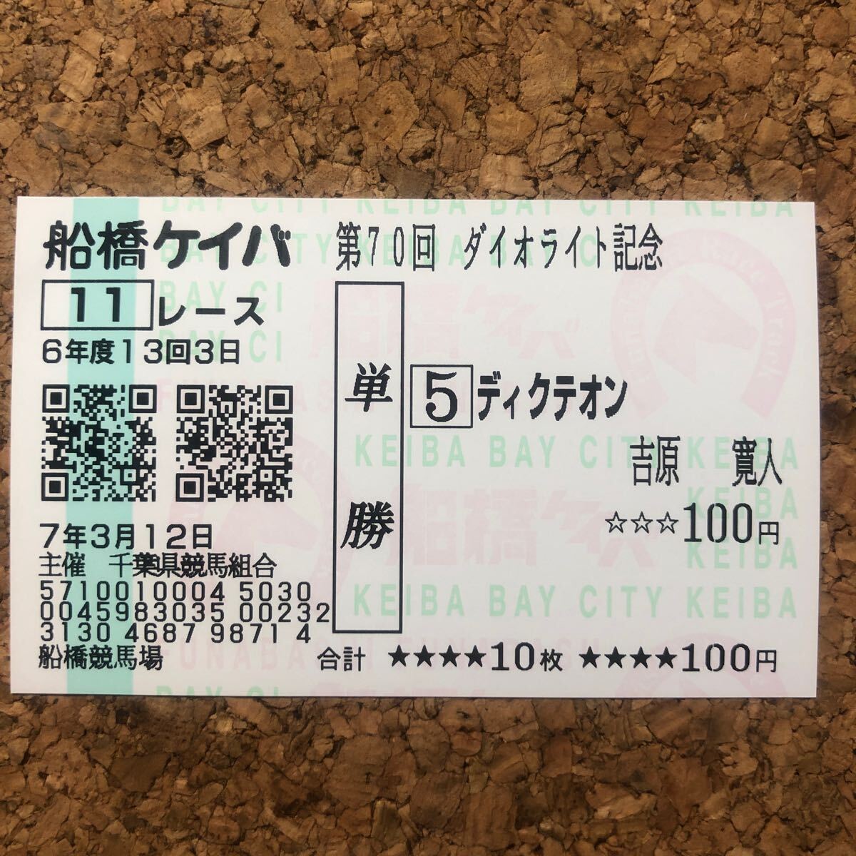- ディクテオン ダイオライト記念 現地購入単勝馬券 2025年3月12日 船橋競馬場 JRA 吉原寛人