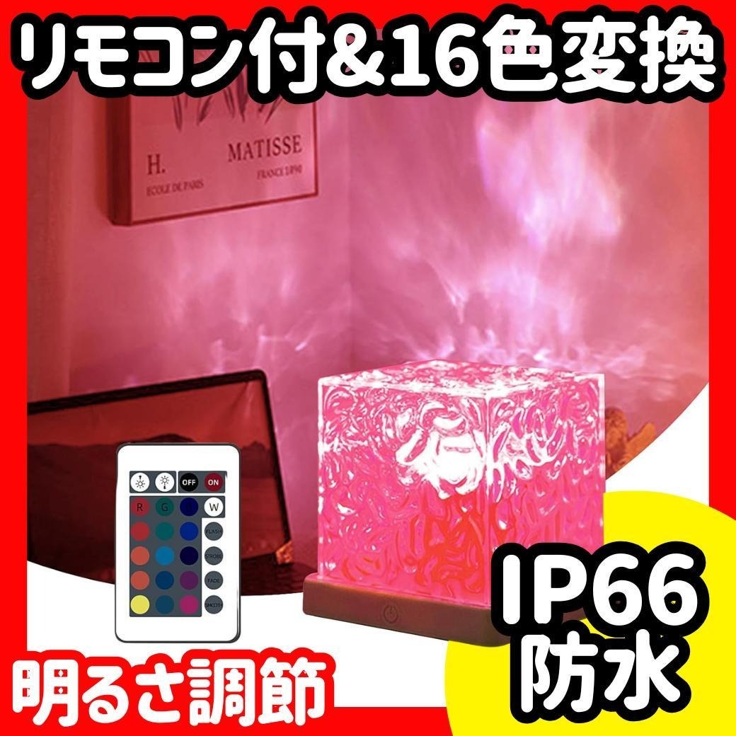 - 【リモコン付き&16色変換】ナイトライト 水面 ライト ベッドサイドランプ