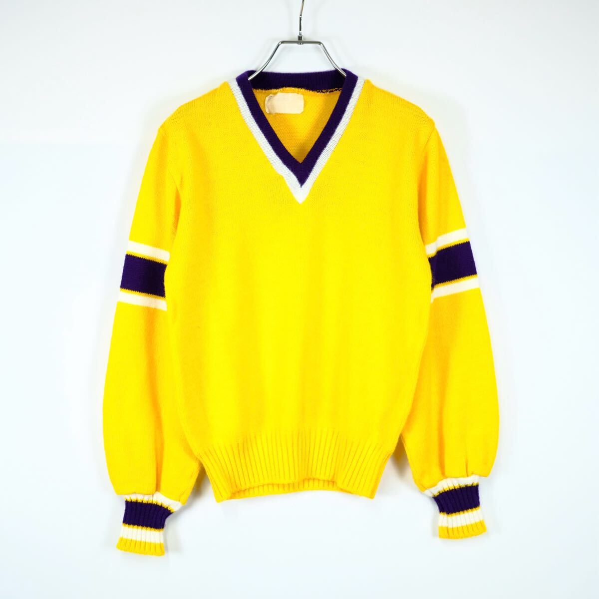 - 1960〜70s ビンテージ Vネック デザインニットセーター 古着屋 USA製 スクール レアカラー 海外仕入れ アート
