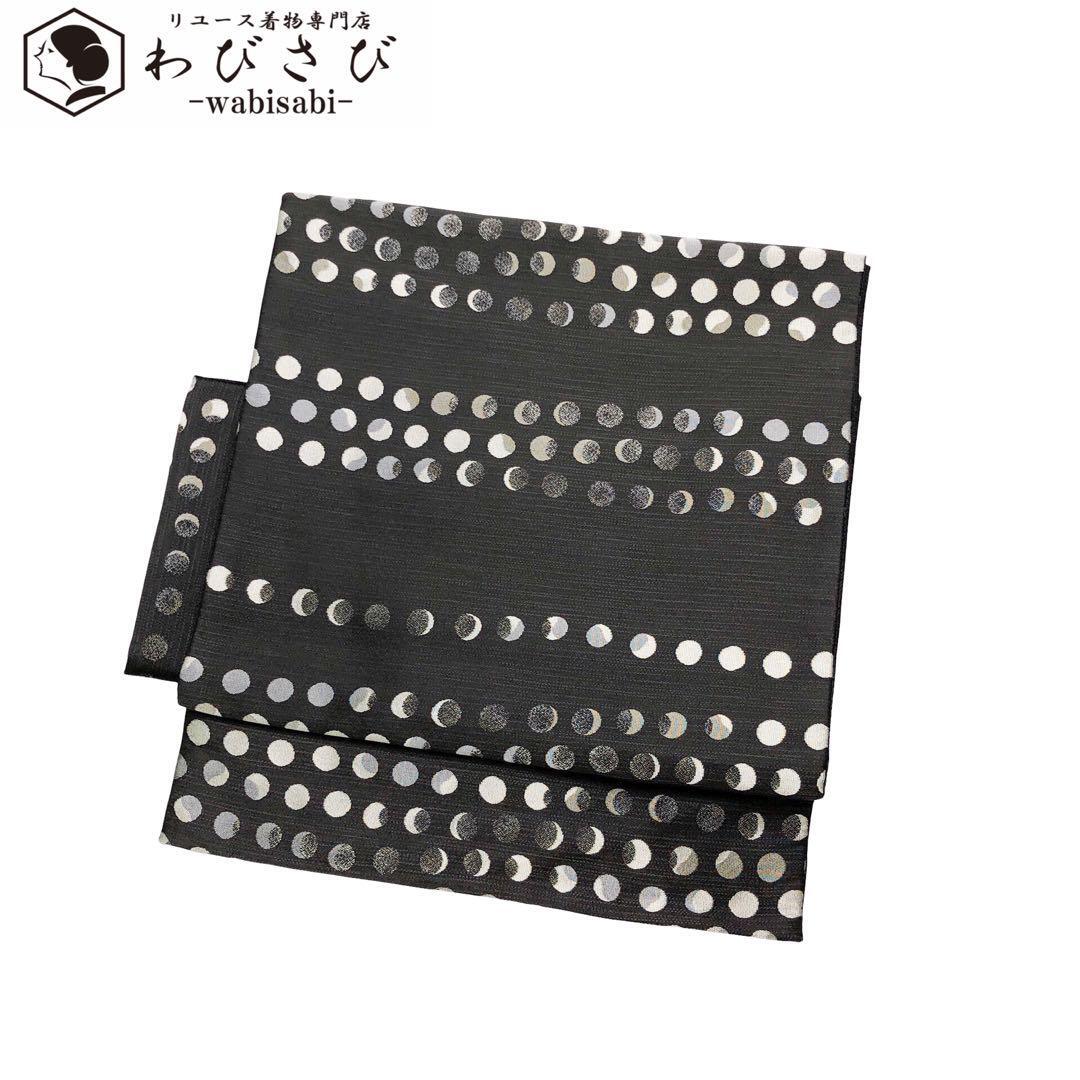 - 作り帯 付け帯 袋帯 月の満ち欠け ドット柄 墨色 金銀糸 O-4809 着物 きもの kimono 和服 和装 中古 リサイクル着物 【送料無料】