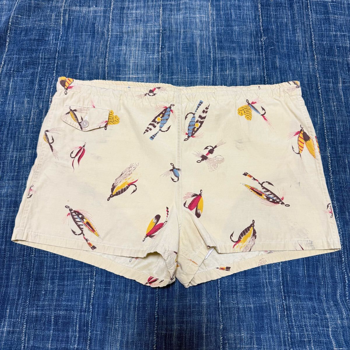 - 送料無料 1940s McGREGOR マクレガー Scottish Drizzler Swimwear 水着 ルアー柄 レーヨン サーフィン ショートパンツ ビンテージ