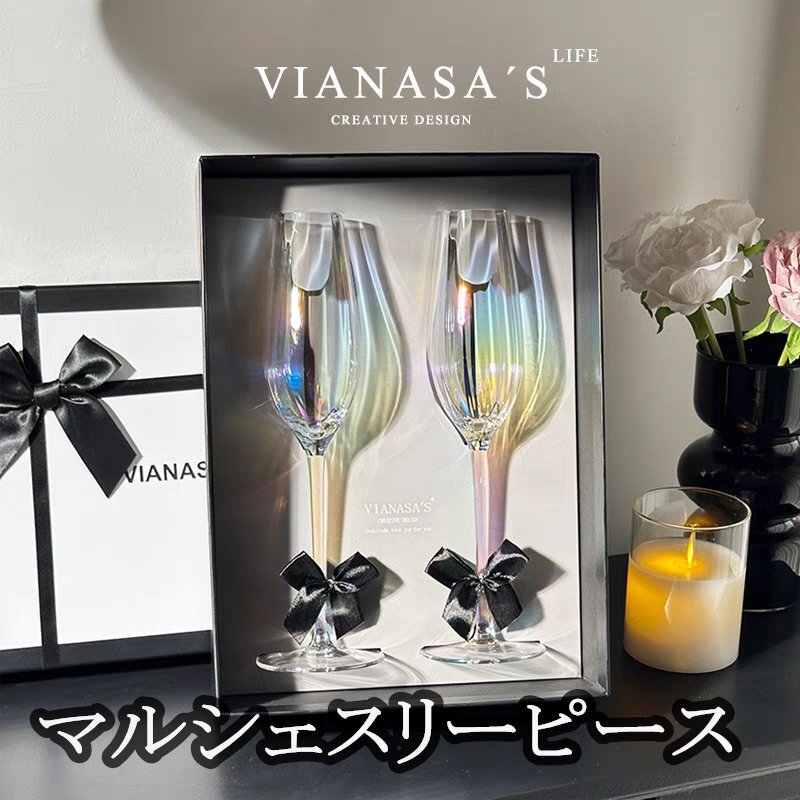 - 極美品 ★パールカラー シャンパングラス フット付き ラグジュアリー フレンチクリスタル デザートワイングラス ギフトボックス入り