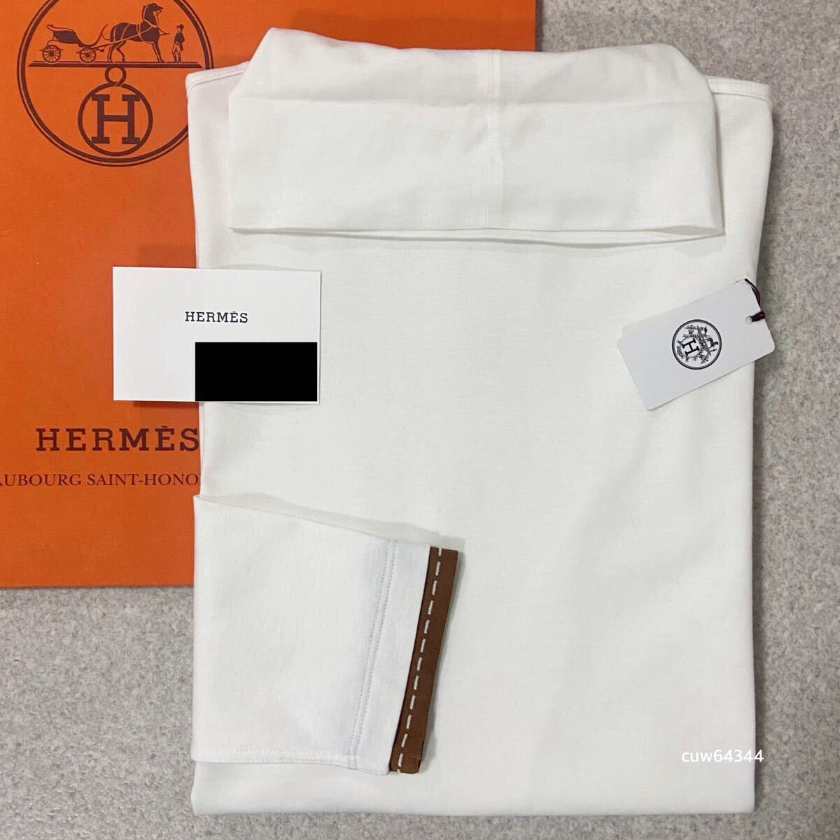 > 国内正規品 未使用 23~24 XS~ Hermes エルメス サドルステッチ ハイネック 長袖 Tシャツ ロンT 白 ホワイト ブランドタグ