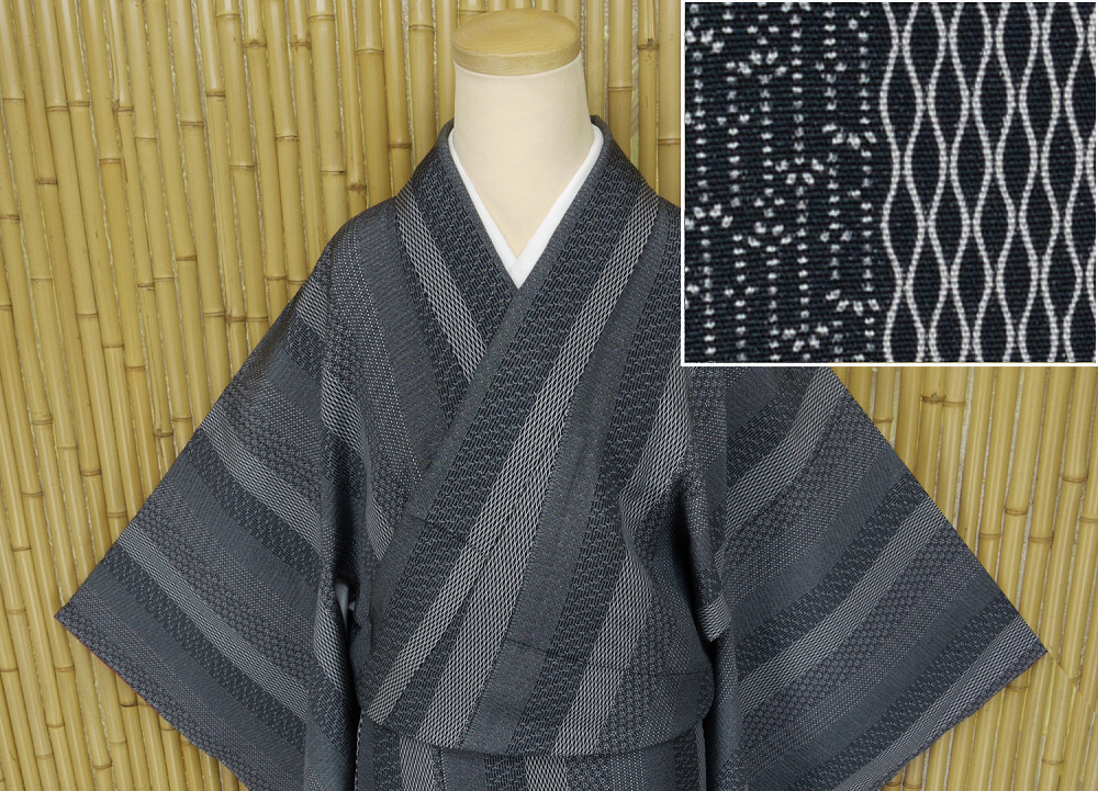 > 【京かんざし】571★江戸小紋 東京染め 縦縞 黒地 シルクガード加工済 躾糸付未着用身丈169 cm裄丈67 cm★即決送料無料!