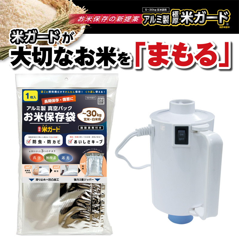 - 極厚米ガード 30kg用 米ポンプ 吸引機セット 米防虫袋 米真空袋 玄米保管 米袋 真空パック 備蓄米 貯蔵米 環境技研