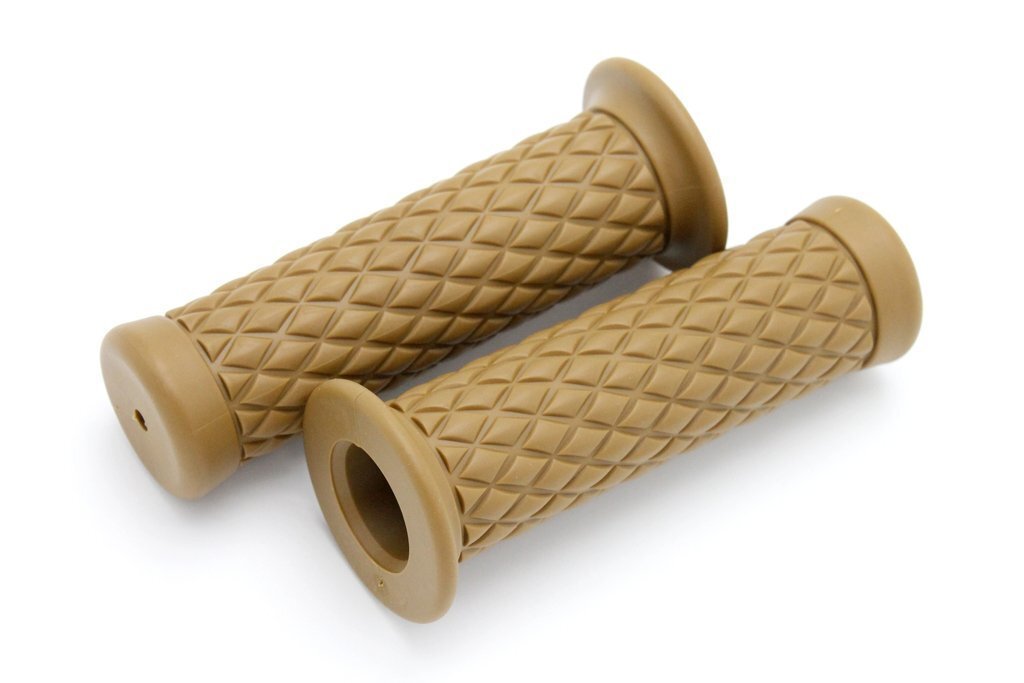 - 送料格安 非貫通 ラバーグリップ 左右セット ダイヤ柄 カーキ ブラウン ゴムグリップ カスタムグリップ エンド付き 汎用 22.2mmハンドル用