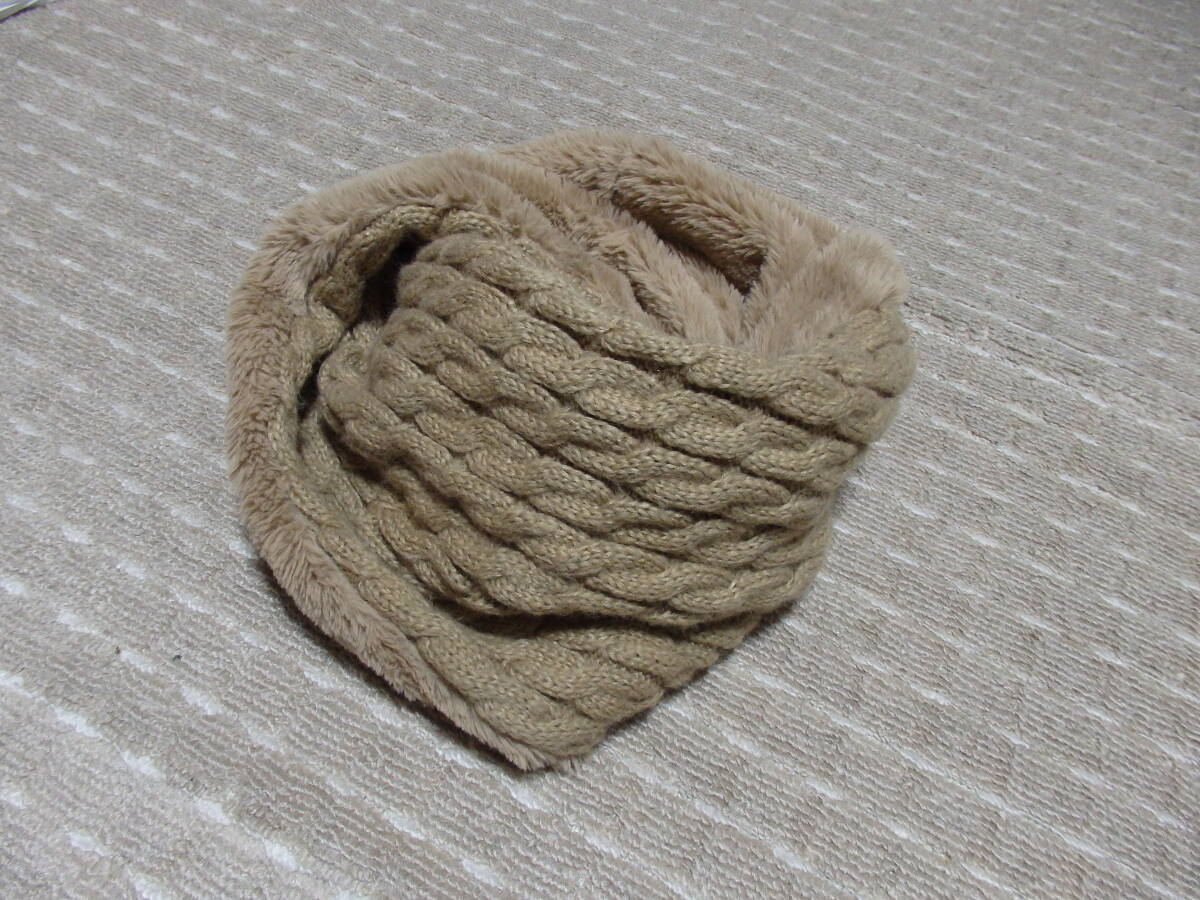 - スヌード ニットXファー マフラー ネックウォーマー 茶