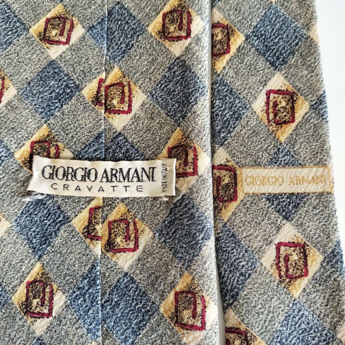 - GIORGIO ARMANI(ジョルジオアルマーニ)グレーブルー赤四角チェックネクタイ