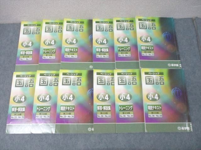 - 希学園 小4 ベーシック 国語 精読テキスト/トレーニング 第1~4分冊 No.1~No.44 通年セット 2021 計8冊 080R2D