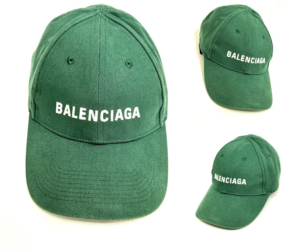 > 良品 国内正規 BALENCIAGA バレンシアガ ロゴ キャップ クラシック グリーン L 59㎝ エブリデイ メンズ 男女 定価6万