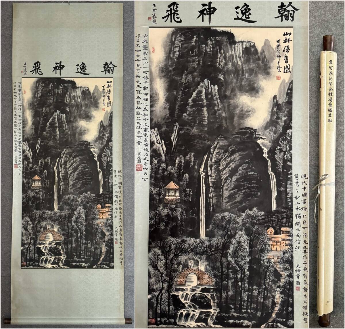 - 古美術 掛け軸 中国・近現代 「李可染書」 紙本 【山林清音図】 立軸 書道 巻き物 肉筆保証 唐物 古画 画心137x66cm LT-2503167